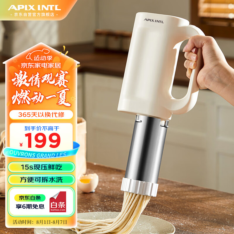 APIXINTL安本素 面条机家用压面机手持压面枪小型电动自动不锈钢压面条机15秒快速出面 APIX-NG01价格:209.00元!