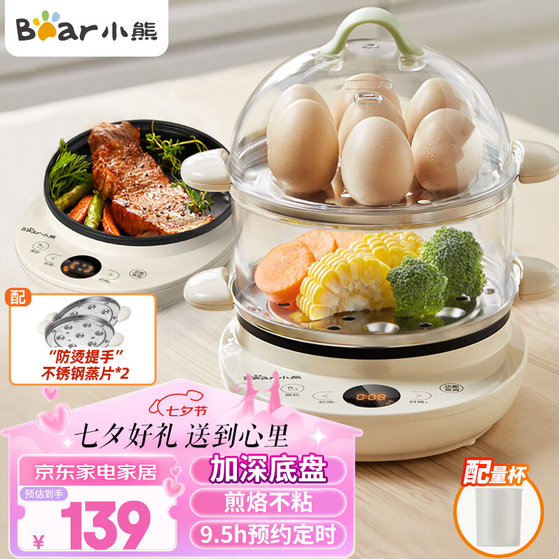 小熊(Bear)煮蛋器 双层家用多功能蒸蛋器 不粘锅煎蛋器 可预约定时自动断电蒸锅 ZDQ-B14V2价格:139.00元!