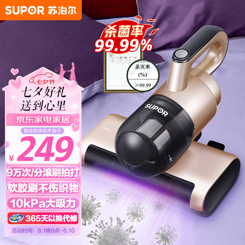 苏泊尔 (SUPOR )除螨仪手持床铺家用吸尘 滚刷拍打紫外线杀菌VCM12T价格:249.00元!