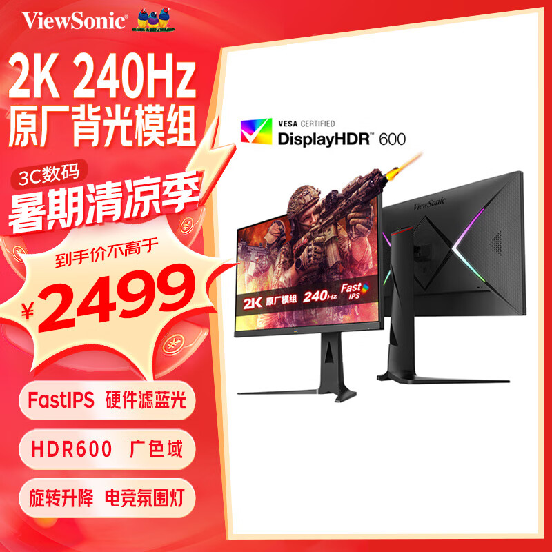 优派27英寸原厂背光 2K 240Hz FastIPS 1ms(GtG) HDR600 广色域 旋转升降 猛擎系列电竞显示器VX2781价格:2683.00元!