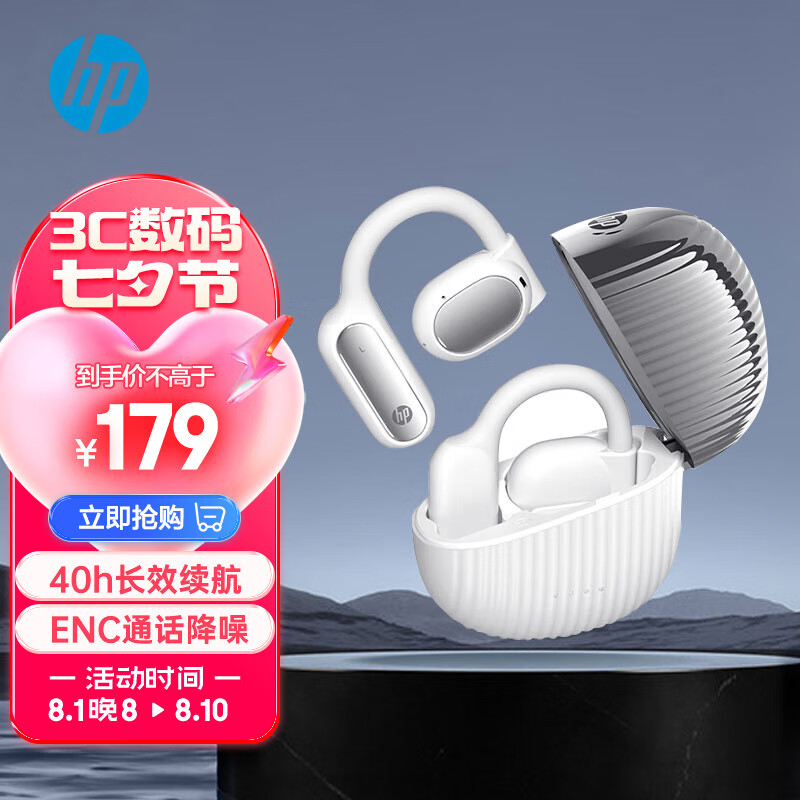 惠普(HP)H23D蓝牙耳机挂耳式真无线 音乐蓝牙运动游戏男女通用降噪适用于苹果华为小米耳机 白价格:179.00元!