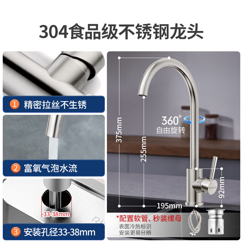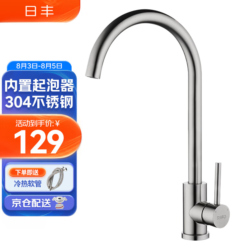 日丰厨房龙头冷热304不锈钢洗菜盆龙头水槽洗碗池水龙头RF-94001BD-M价格:129.00元!