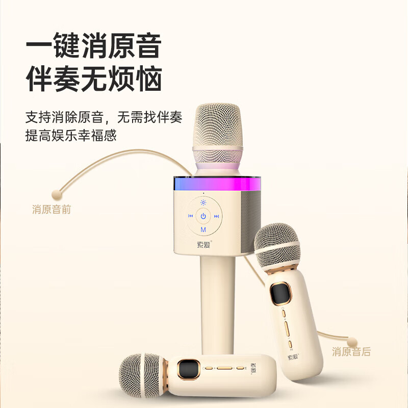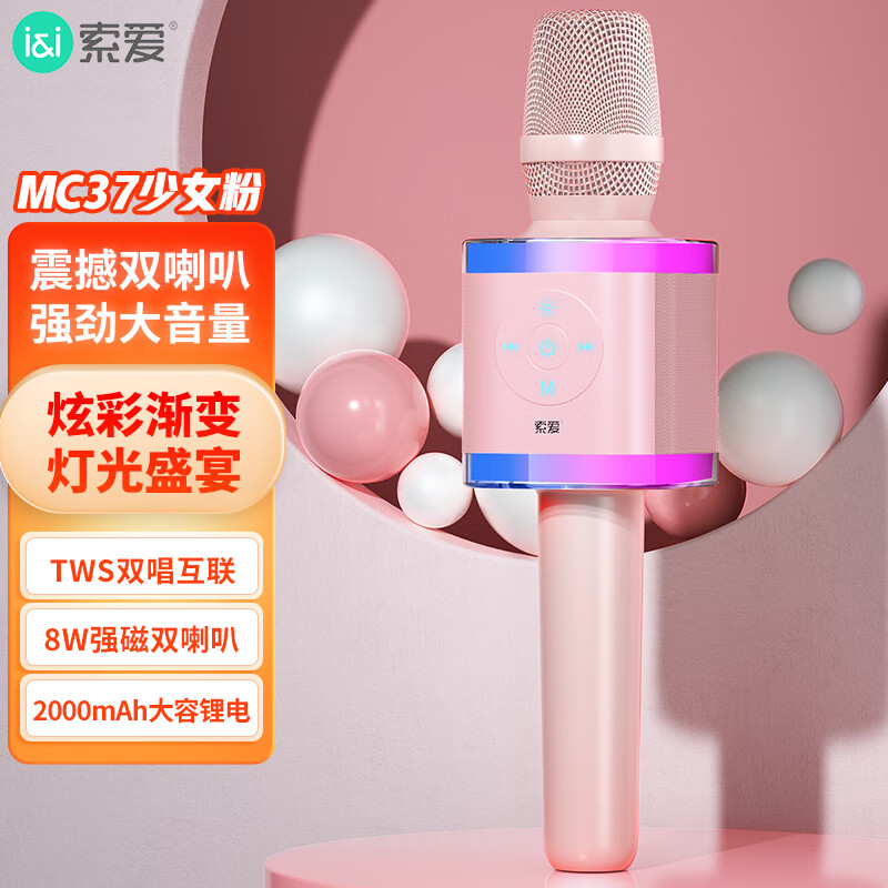 索爱(soaiy) 蓝牙无线麦克风电视K歌话筒音响音箱一体麦克风手机直播家用KTV麦克风儿童话筒 MC37 少女粉礼物价格:269.00元!