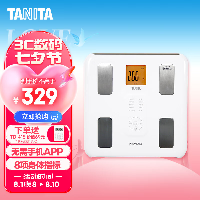 百利达(TANITA)BC-567N家用智能体脂秤 日本品牌电子健康体重秤 香槟酒色价格:375.00元!
