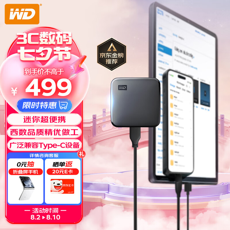 西部数据(WD) 1TB 移动固态硬盘(PSSD)Elements SE新元素 SSD type-c接口 手机直连笔记本电脑外接价格:499.00元!