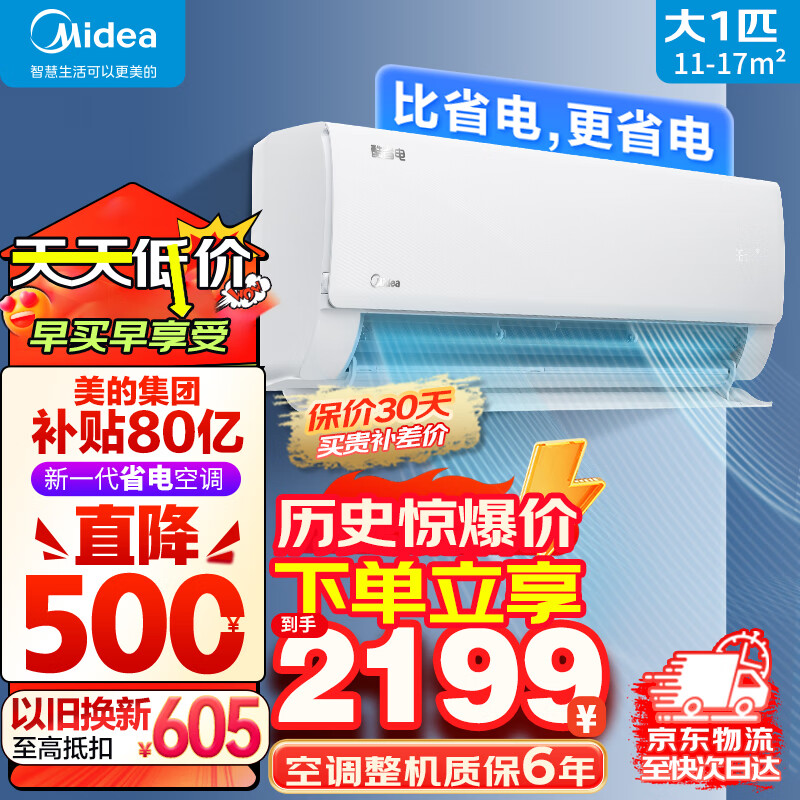 美的(Midea)酷省电空调挂机大1匹级一能效升级大风口全直流变频冷暖空调节能省电 KFR-26GW/N8KS1-1价格:2099.00元!