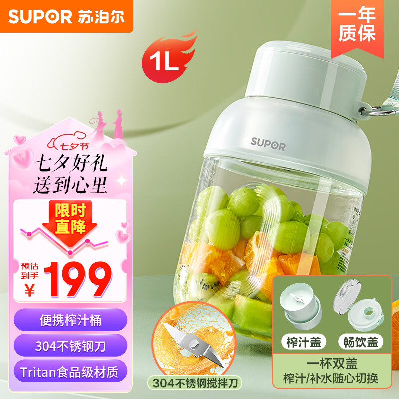 苏泊尔(SUPOR)榨汁杯 榨汁机便携 无线充电果汁机 户外随行杯果汁杯 小型榨汁桶 JC500价格:199.00元!