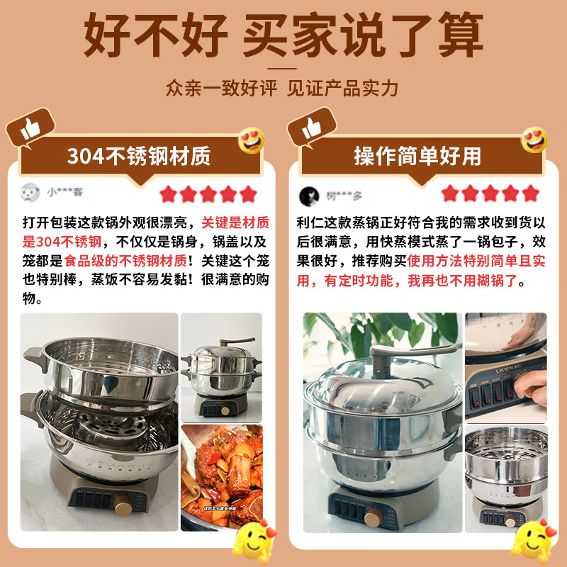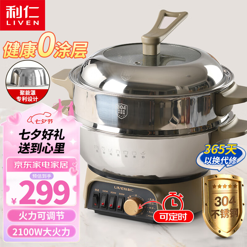 利仁(Liven)电蒸锅电煮锅电炒锅电火锅专用锅电锅一体多功能锅电热锅蒸馒头包子多用途锅蒸蛋器定时 DZG-J3236价格:339.00元!