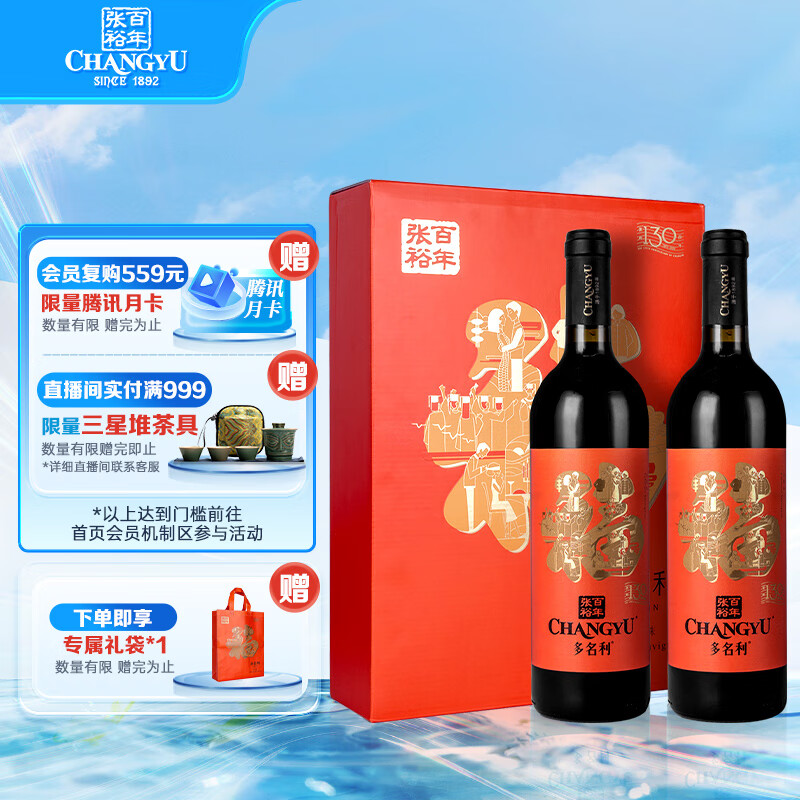 张裕 福礼盒赤霞珠干红葡萄酒750ml*2礼盒装国产红酒送礼价格:132.00元!