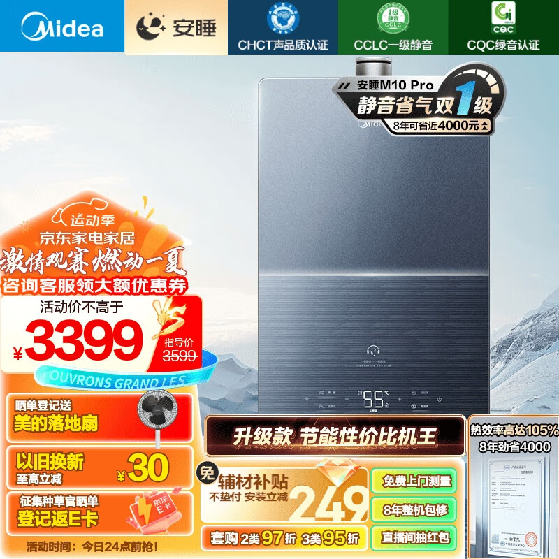 美的(Midea)安睡M9升级超一级能效 16升燃气热水器一级静音2.0低噪水伺服 密闭稳燃舱抗12级风JSLQ27-M10 Pro价格:3399.00元!
