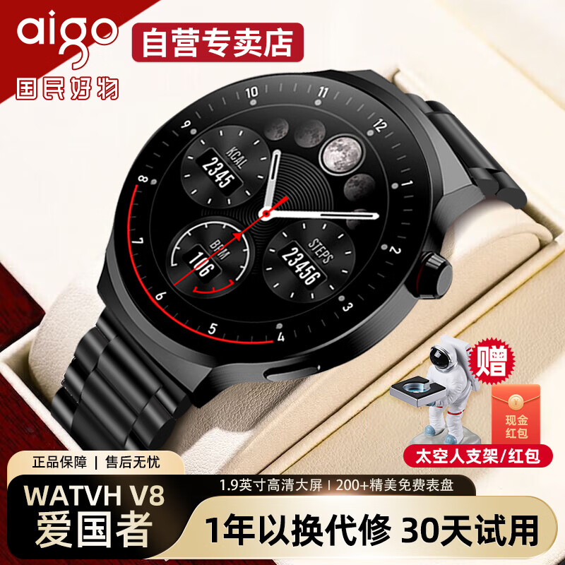 爱国者V8智能运动手表顶配男女同款健康监测血压心率多功能通话情人节送礼黑色价格:518.00元!