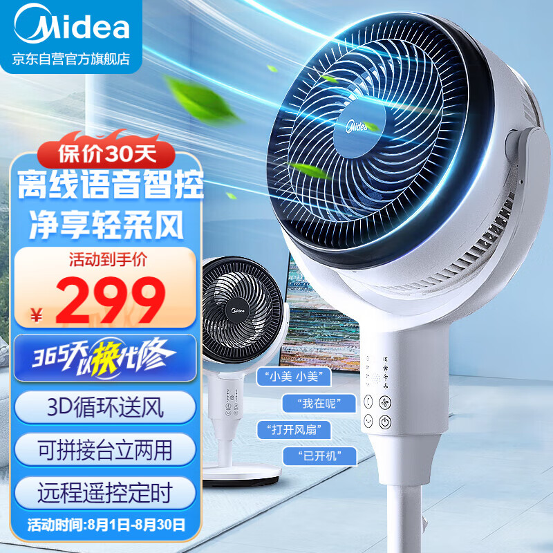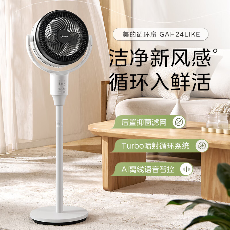 美的(Midea)电风扇 空气循环扇家用立式遥控落地扇涡轮换气扇循环对流3D摇头电扇轻音低噪大风力节能风扇 GAH24LIKE【语音智控 抑菌滤网】价格:499.00元!