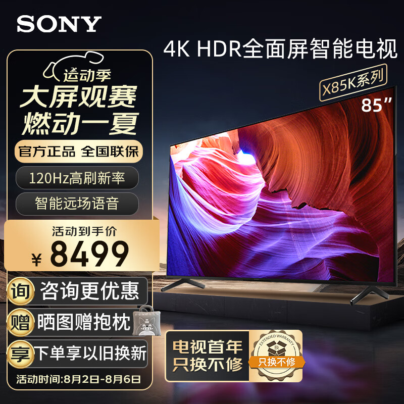 索尼(SONY)KD-85X85K 85英寸 大屏4K HDR 屏安卓智能液晶平板电视机 广色域 120Hz 客厅巨幕价格:7799.00元!