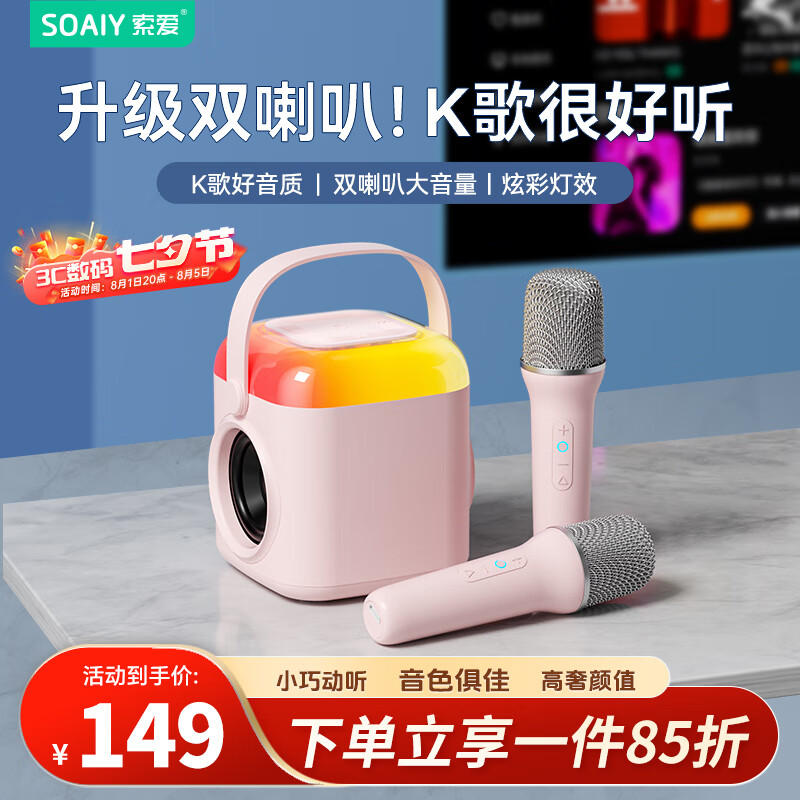索爱(soaiy)话筒音响一体自带声卡k歌麦克风家庭ktv音响套装无线蓝牙音箱唱歌神器一体式儿童话筒 SK18双麦粉价格:175.29元!