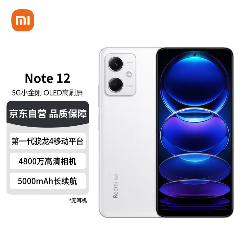 Redmi Note12 5G 120Hz OLED屏幕 骁龙4移动平台 5000mAh长续航 8GB+256GB镜瓷白 智能手机 小米红米价格:799.00元!