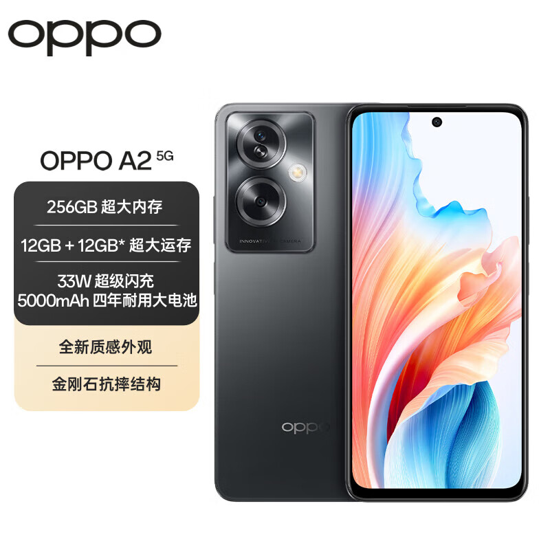 OPPO A2 静海黑12GB+256GB 超大内存 四年耐用电池 全新质感外观 33W超级闪充 智能5G手机价格:1399.00元!