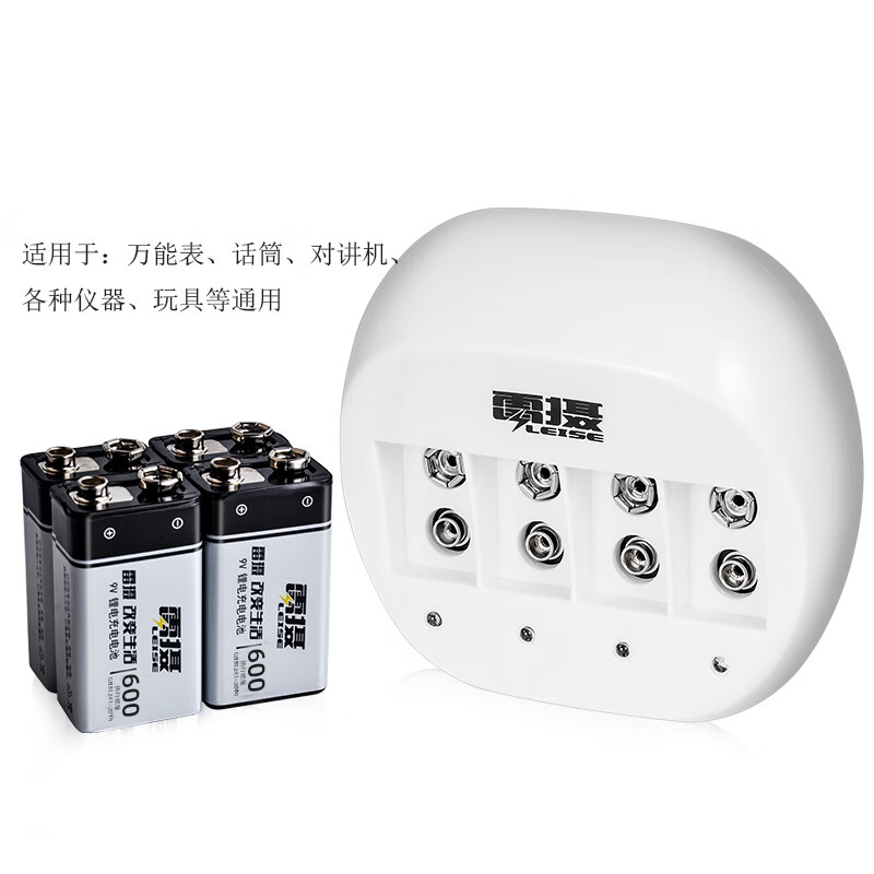 雷摄 LEISE 904四槽9V锂电池快速充电套装(配4节600毫安9V锂电池+四槽9V充电器)万用表/玩具遥控器价格:119.00元!