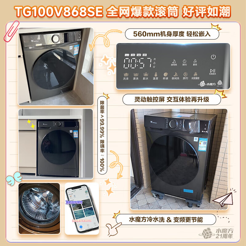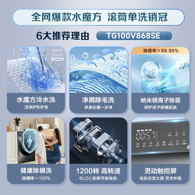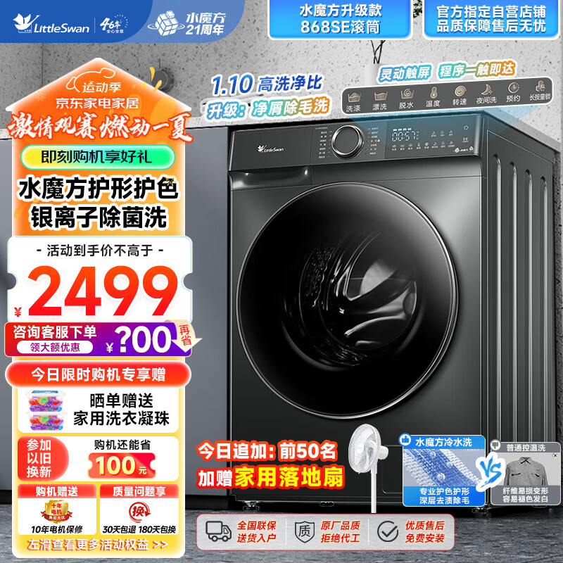 小天鹅滚筒洗衣机全自动 10公斤大容量 水魔方618T超薄 彩屏 除菌螨 1.1高洗净比 以旧换新 TG100V868SE价格:2599.00元!