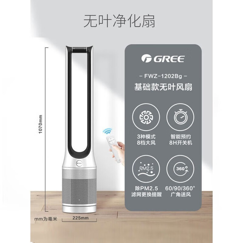 格力(GREE)无叶电风扇落地塔扇新潮无叶安享清凉滤网过滤净化空气电扇 FWZ-1202Bg价格:999.00元!