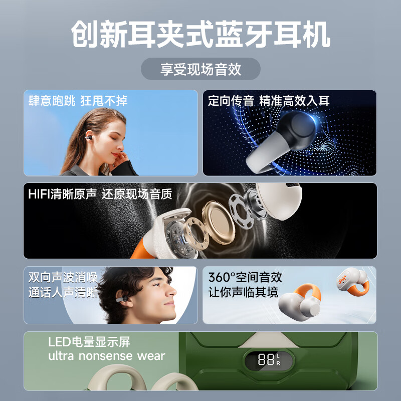 Jeep吉普【美国户外品牌】骨传导概念真无线挂耳开放耳夹式不入耳运动跑步蓝牙耳机长续航降噪价格:159.00元!