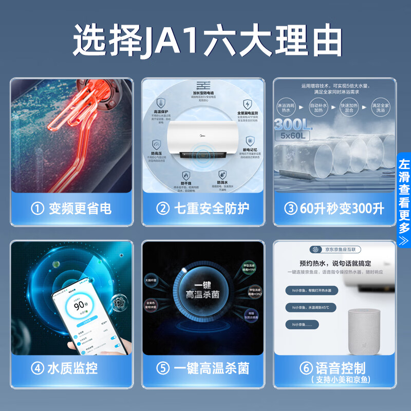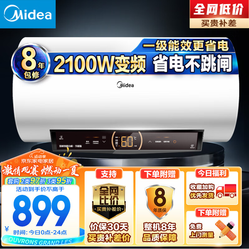 美的(Midea)漏电检测60升家用储水式电热水器一级能效变频速热大水量无缝内胆京东小家F6021-JA1(HEY)价格:799.00元!
