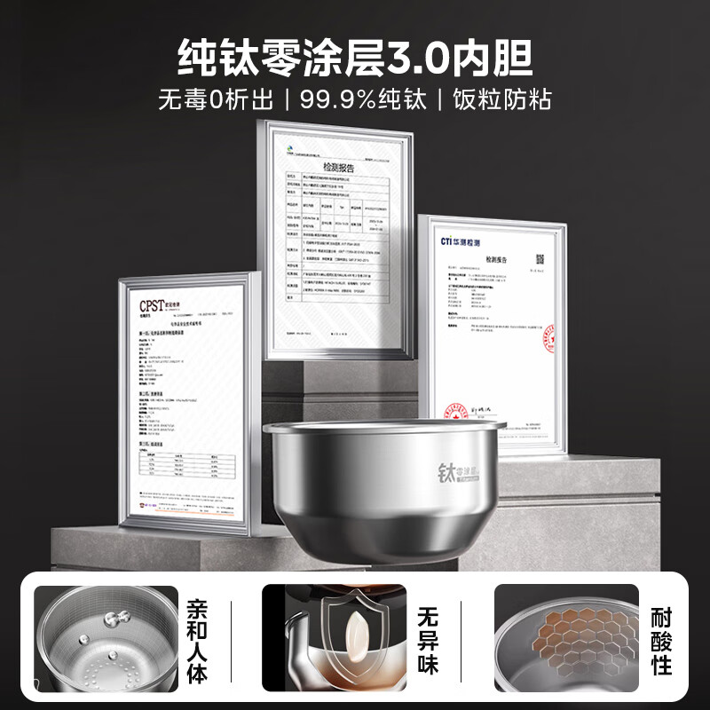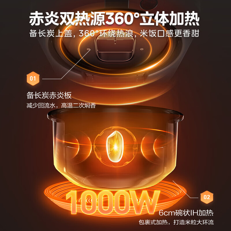 美的纯钛0涂层低糖电饭煲3L电饭锅家用2-3-4-6人 赤炎炭火1000W电磁IH双热源加热【钛釜系列】CFB3066T价格:1259.00元!