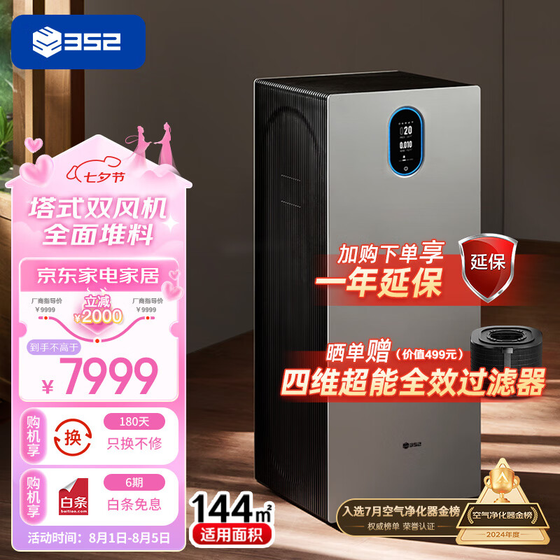 352空气净化器 除甲醛细菌病毒异味过敏原 甲醛精准数显 大空间家用塔式双风机净化器Z120价格:8199.00元!