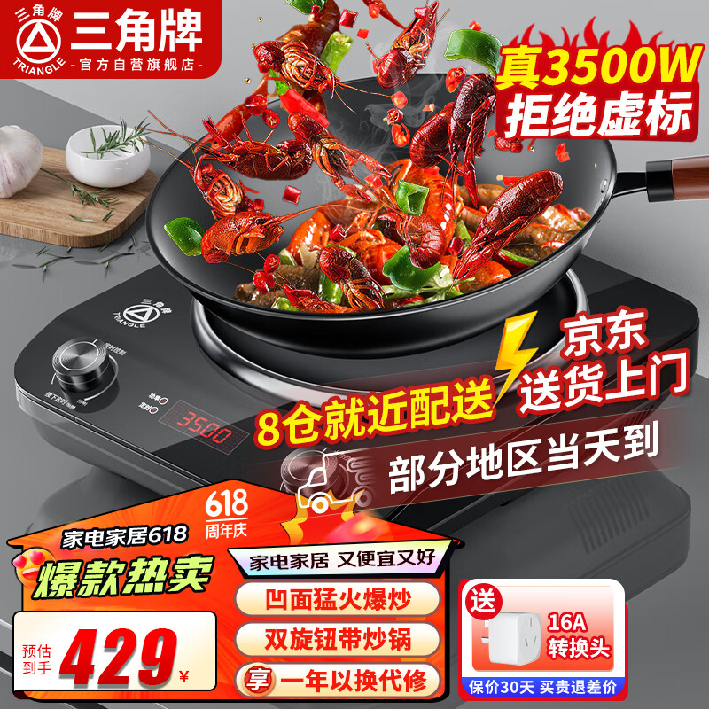 三角牌(Triangle)商用电磁炉大功率凹面电磁灶爆炒3500w炒菜电炒炉家用多功能炒菜一体无缝玻璃面带锅GSY350价格:373.00元!