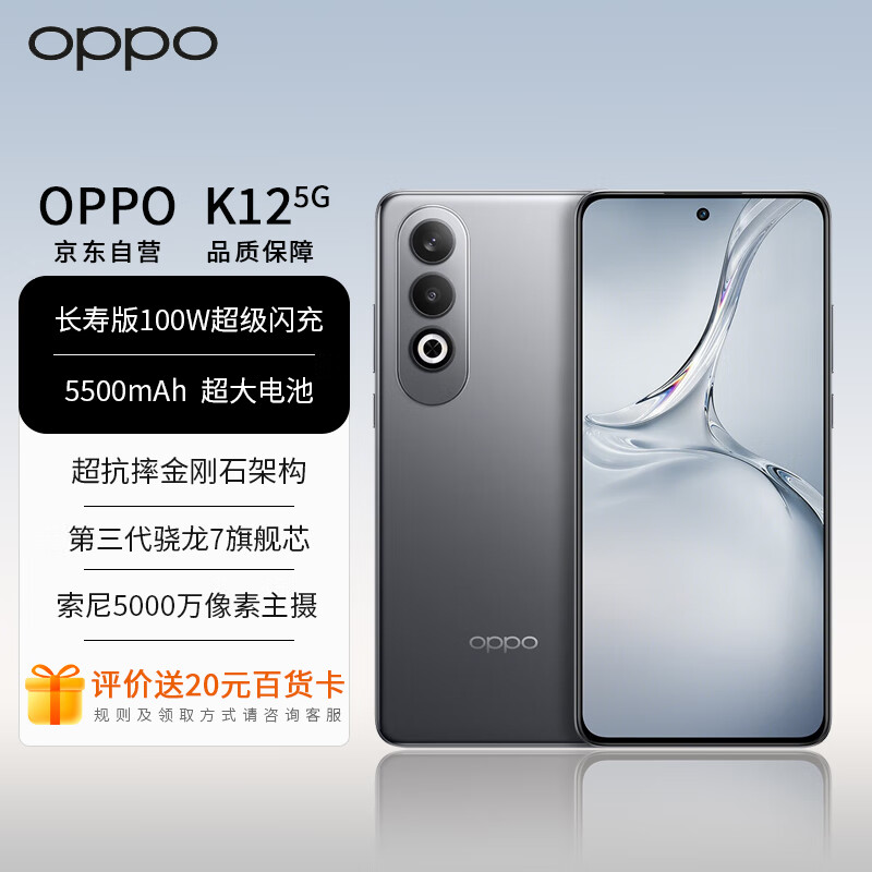 OPPO K12 5G 100W闪充 5500mAh超长续航 第三代骁龙7旗舰芯 直屏新款拍照游戏 AI手机 12GB+256GB 星夜价格:1799.00元!