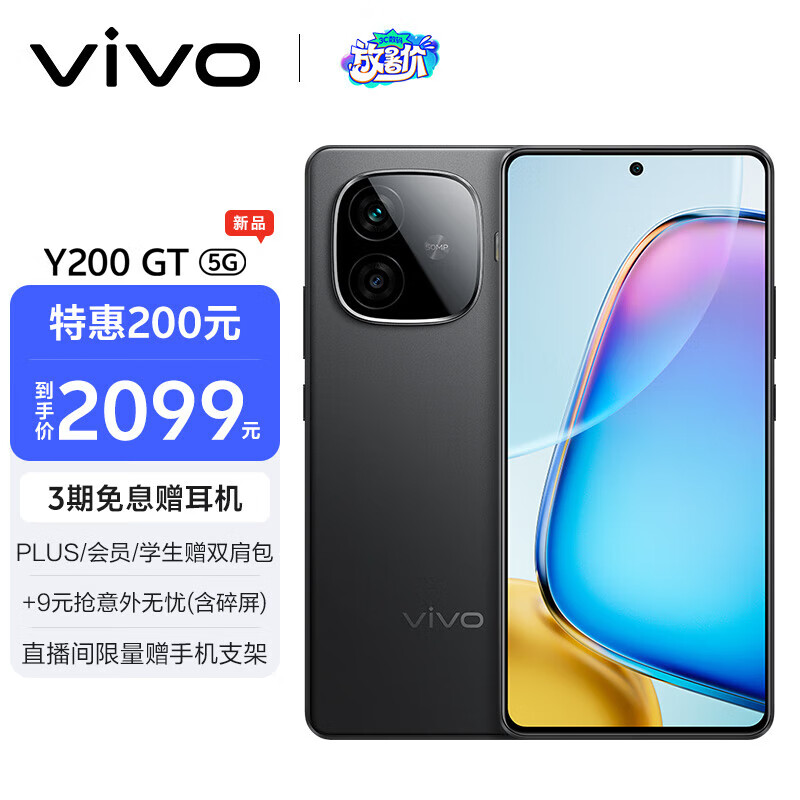 vivo Y200 GT 12GB+512GB 雷鸣 轻薄6000mAh+80W 第三代骁龙7 144Hz 1.5K金刚护眼屏 拍照 手机价格:2299.00元!