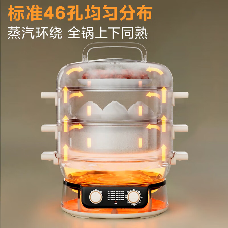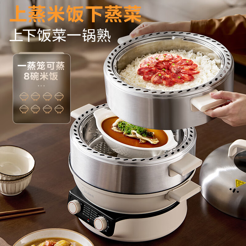 美的(Midea)环绕蒸电蒸锅多功能锅家用蒸煮炖炒多功能一体锅可蒸饭四层大容量3-4人多用途锅不锈钢电锅ZGC3052价格:399.00元!