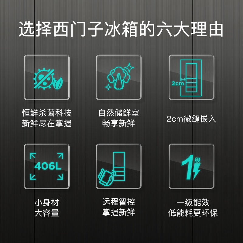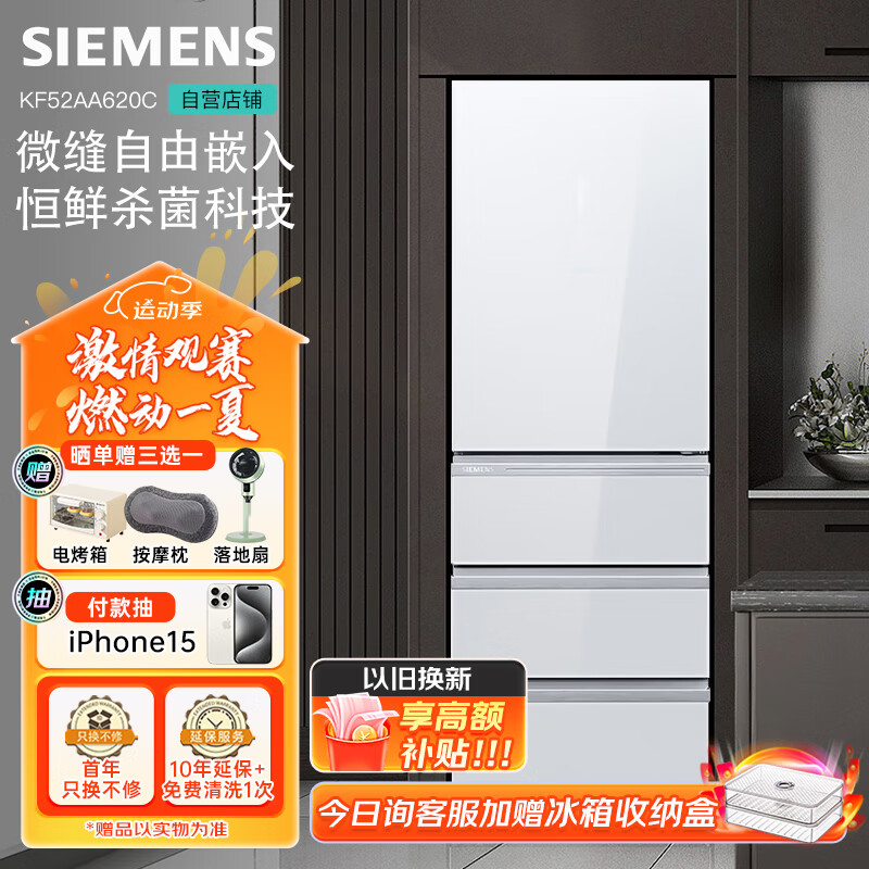 西门子冰箱406升四开门百变储鲜微缝自由嵌入风冷无霜恒鲜除菌科技智能远程控制家用冰箱KF52AA620C价格:12049.00元!