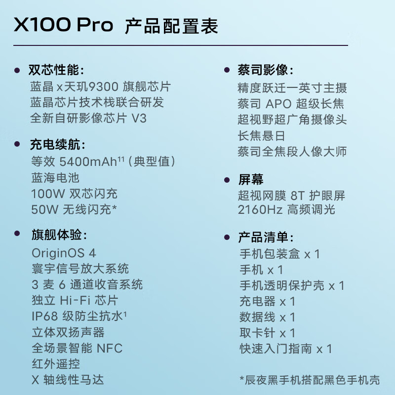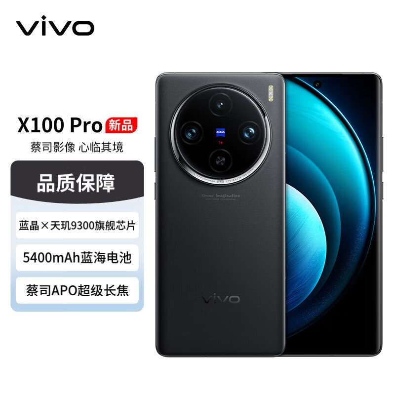 vivo X100 Pro 16GB+1TB 辰夜黑 蔡司APO超级长焦 蓝晶×天玑9300 5400mAh蓝海电池 拍照 手机价格:5699.00元!