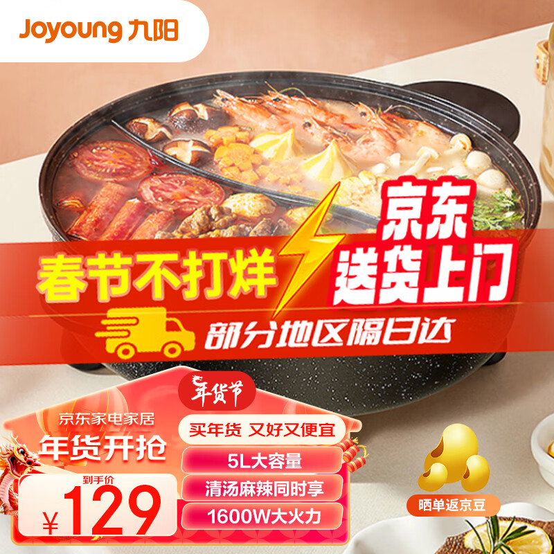 九阳(Joyoung)5L容量 1600W大火力专用锅电火锅电炒锅麦饭石色涂层不粘电煮锅年货送长辈送老人 HG50-G512价格:117.90元!