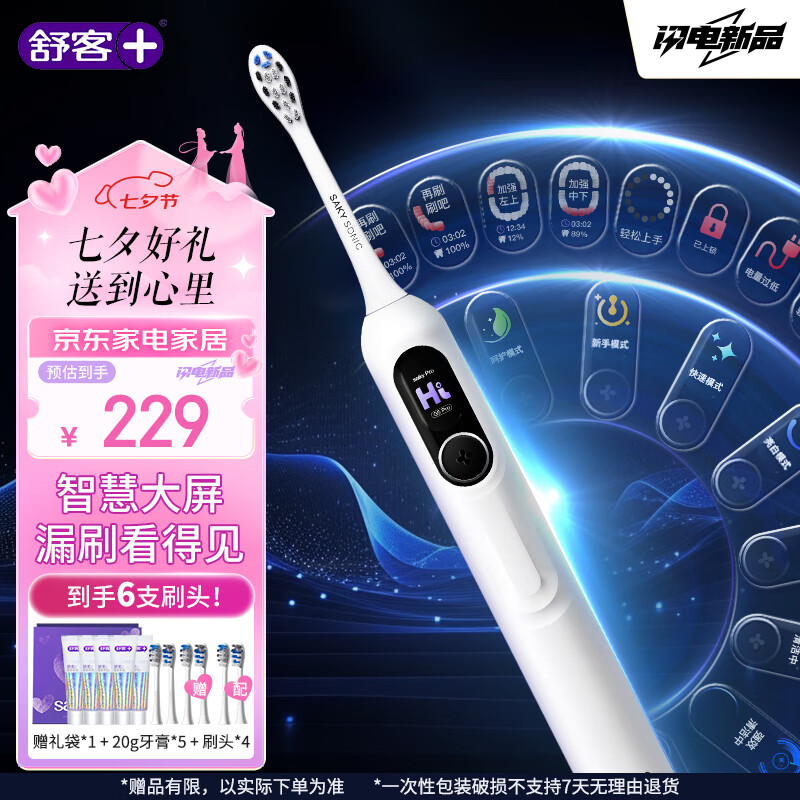 舒客1级清洁情侣电动牙刷智能换区成人/学生送男友/女友180天续航软毛护龈七夕情人节礼物G5 pro雪域白价格:299.00元!