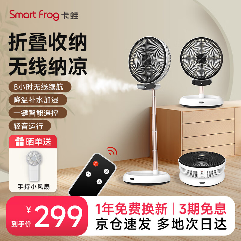 卡蛙(smartfrog)电风扇伸缩折叠空气循环扇家用节能轻音直流变频落地扇充电露营便携遥控台立两用电风扇 豪华版价格:299.00元!