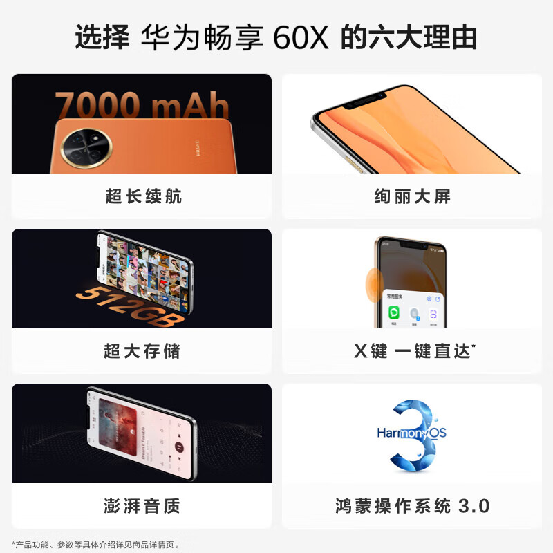 华为手机畅享 60X 7000mAh长续航 6.95英寸 影音大屏 256GB 皓月银 鸿蒙智能手机价格:1199.00元!