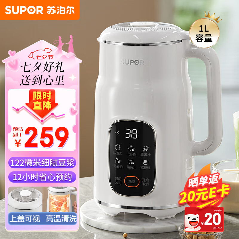 苏泊尔(SUPOR)豆浆机1L 家用破壁机全自动清洗免过滤304内胆破壁机辅食机榨汁机 DJ10B-P60E价格:259.00元!