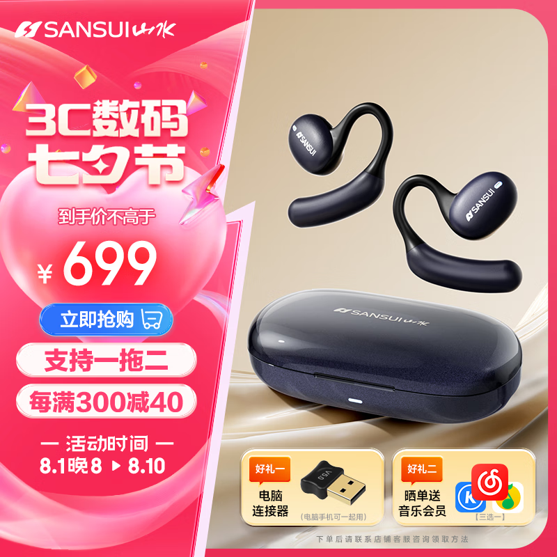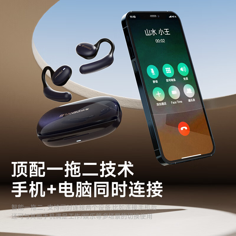 山水(SANSUI)TW35【超感音质丨柏林之声】蓝牙耳机挂耳式 骨传导概念不入耳开放式 运动降噪 适用华为苹果 深蓝价格:799.00元!