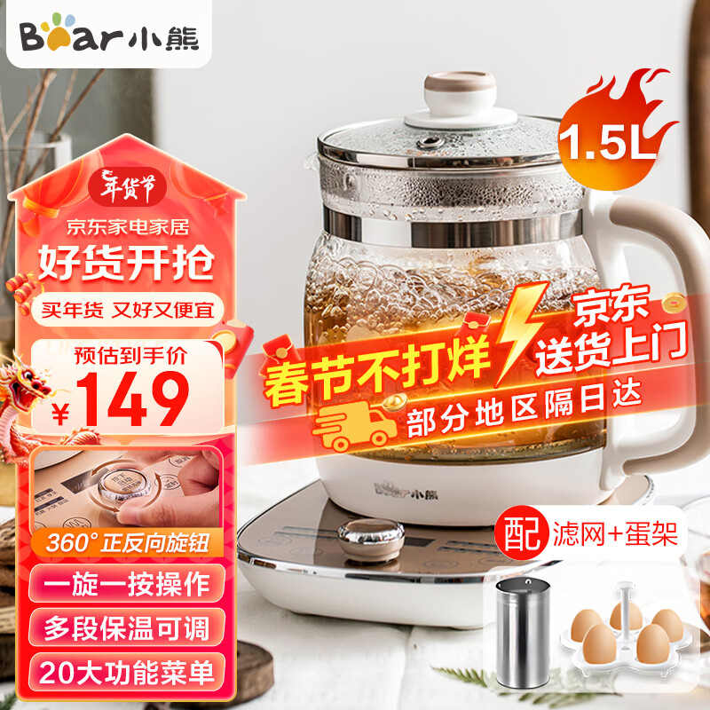 小熊(Bear)养生壶智能热水壶烧水壶煮茶器家用电水壶保温恒温电热水壶燕窝壶迷你开水泡茶壶 【20大功能|多段保温】YSH-A15W6价格:149.00元!