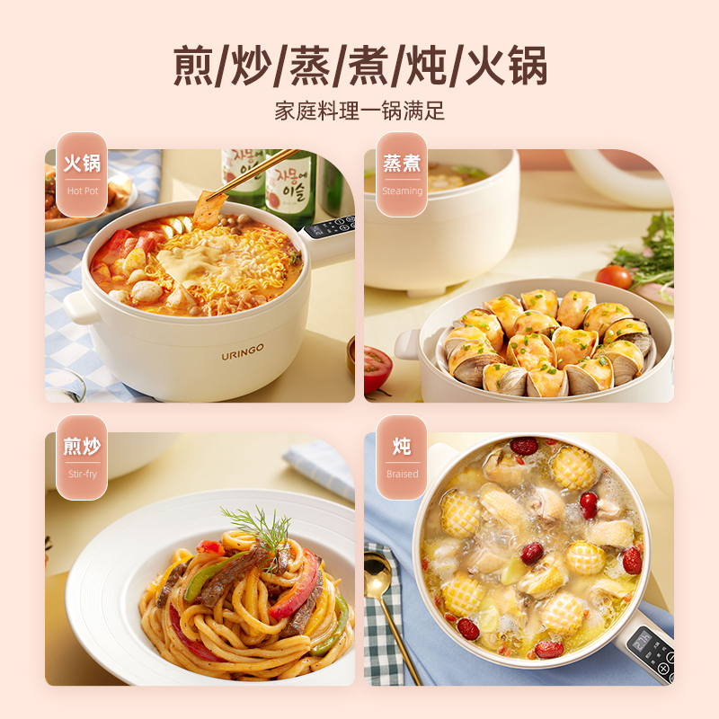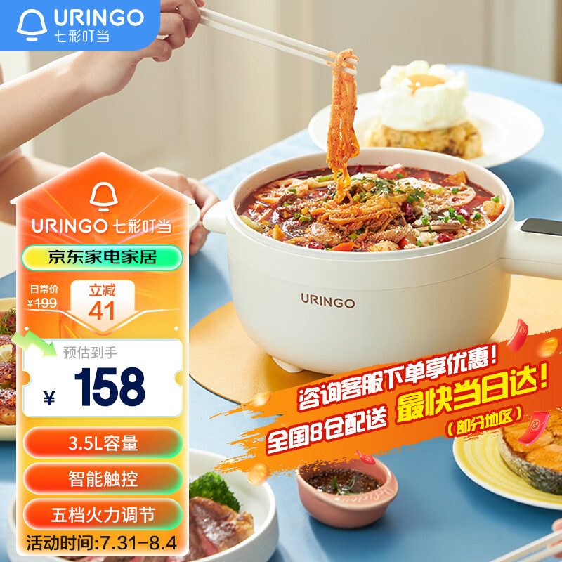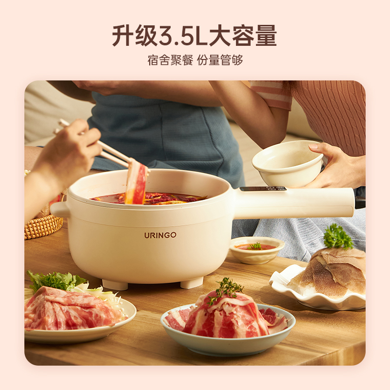 七彩叮当(URINGO)电煮锅小电锅家用涮锅电火锅便携式大容量电煮锅3.5升多功能用途锅SD03价格:158.00元!