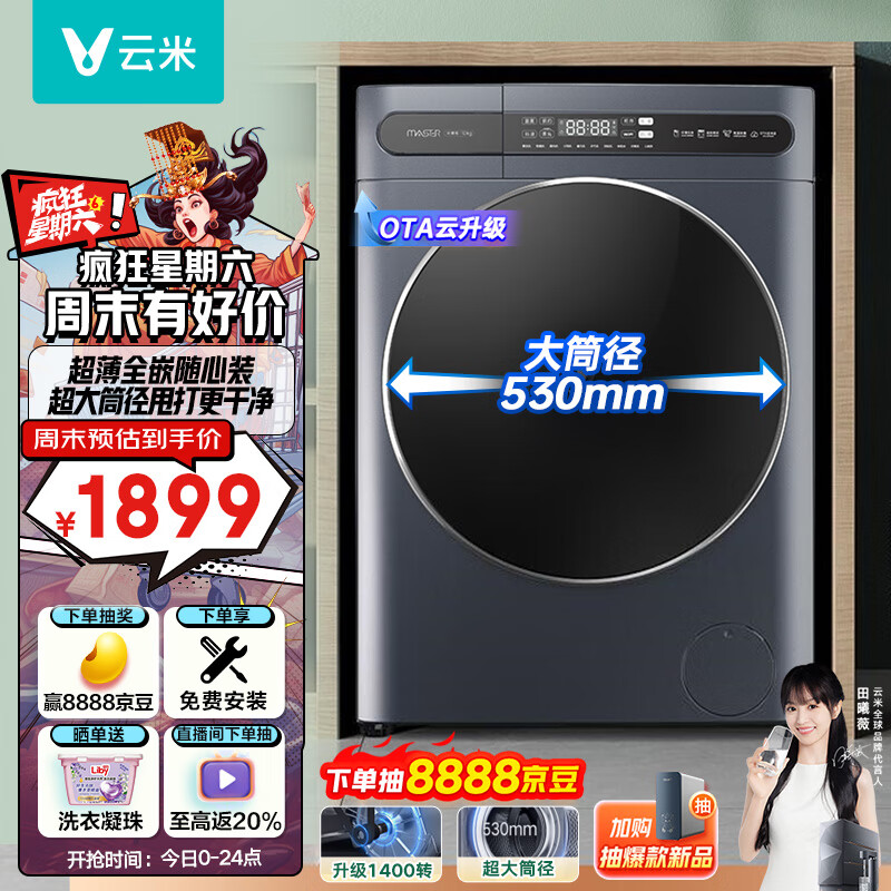 云米(VIOMI)除菌家用滚筒洗衣机全自动 超薄全嵌 10公斤变频大容量 内衣 智能家电 大筒径WM10FE-B6A价格:1899.00元!