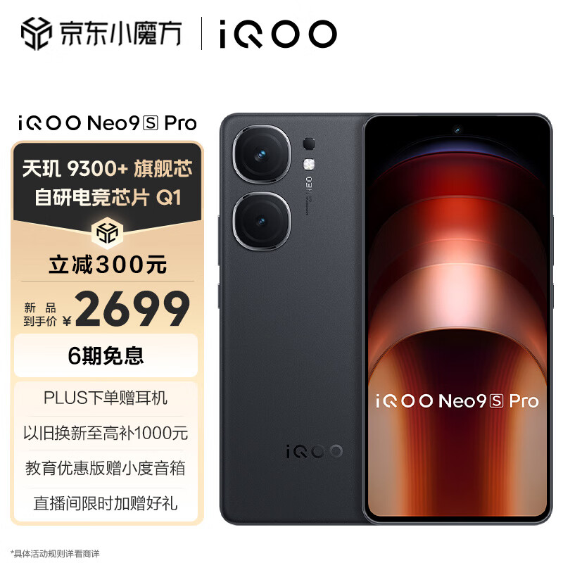 vivoiQOO Neo9S Pro 12GB+256GB 格斗黑 天玑9300+旗舰芯 IMX920索尼大底传感器 电竞手机价格:2999.00元!