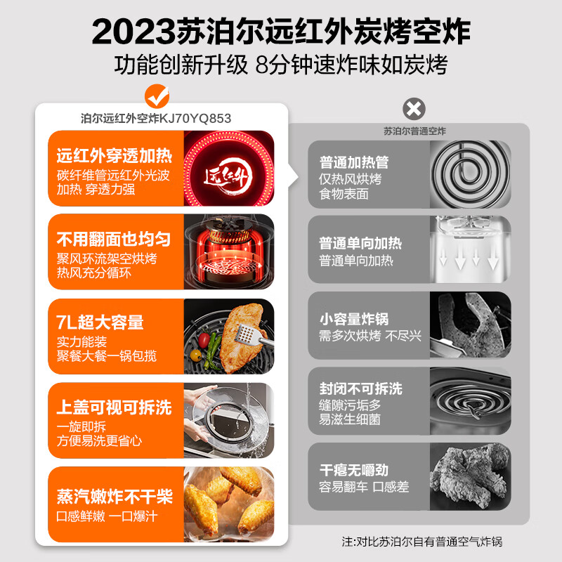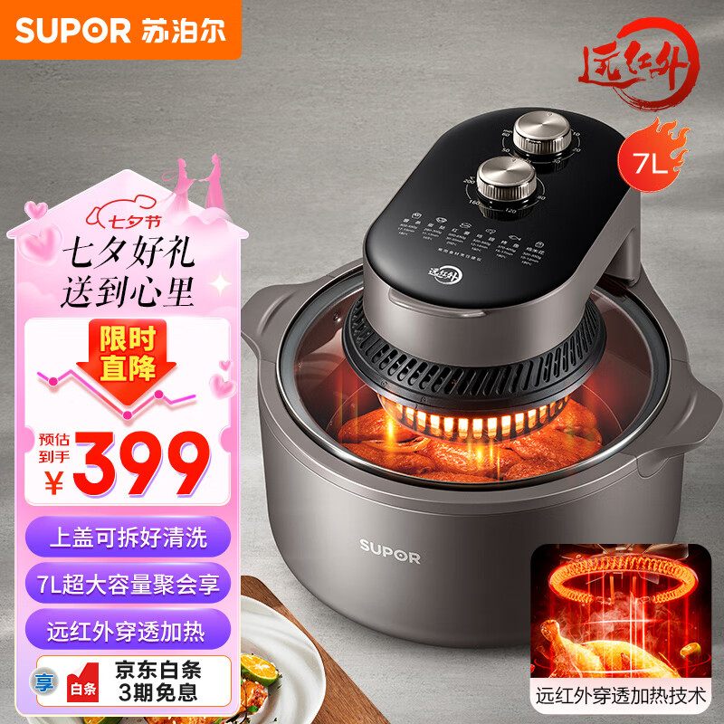 苏泊尔(SUPOR)不用翻面空气炸锅 7L大容量 可视窗口 蒸汽嫩炸 远红外加热 可拆洗 烤箱薯条机 KJ70YQ853价格:439.00元!