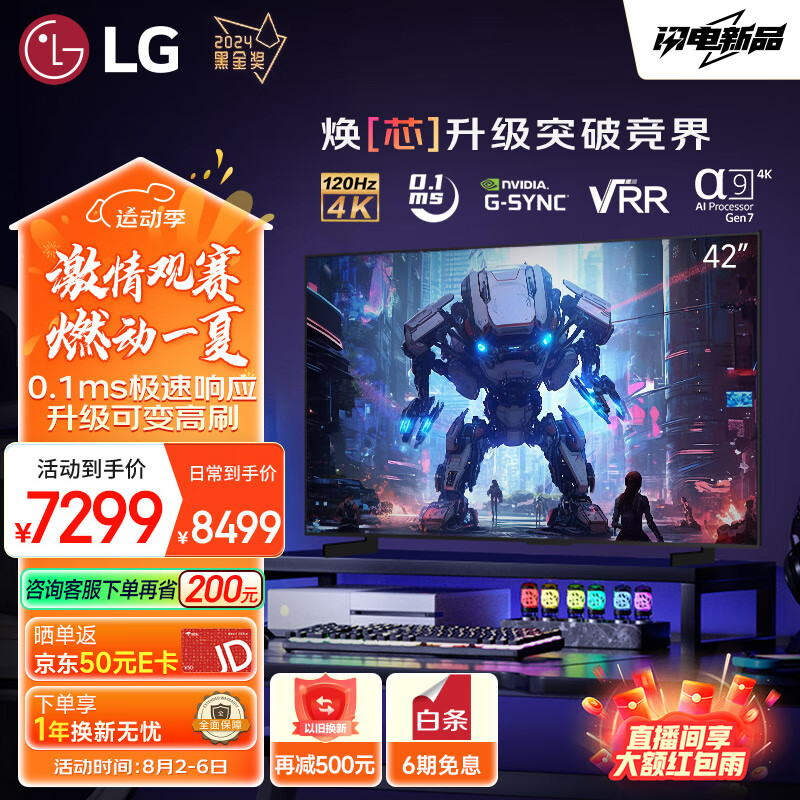 LGC4系列 42英寸OLED42C4PCA 4K超高清屏专业旗舰电竞游戏电视 120Hz高刷 适配PS5价格:7299.00元!