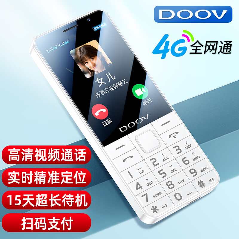 朵唯(DOOV)E9 4G通学生手机 精准定位可支付视频通话 超长待机儿童初高中生无游戏老年机 白色价格:228.00元!