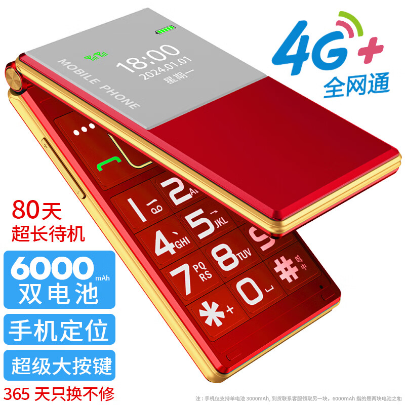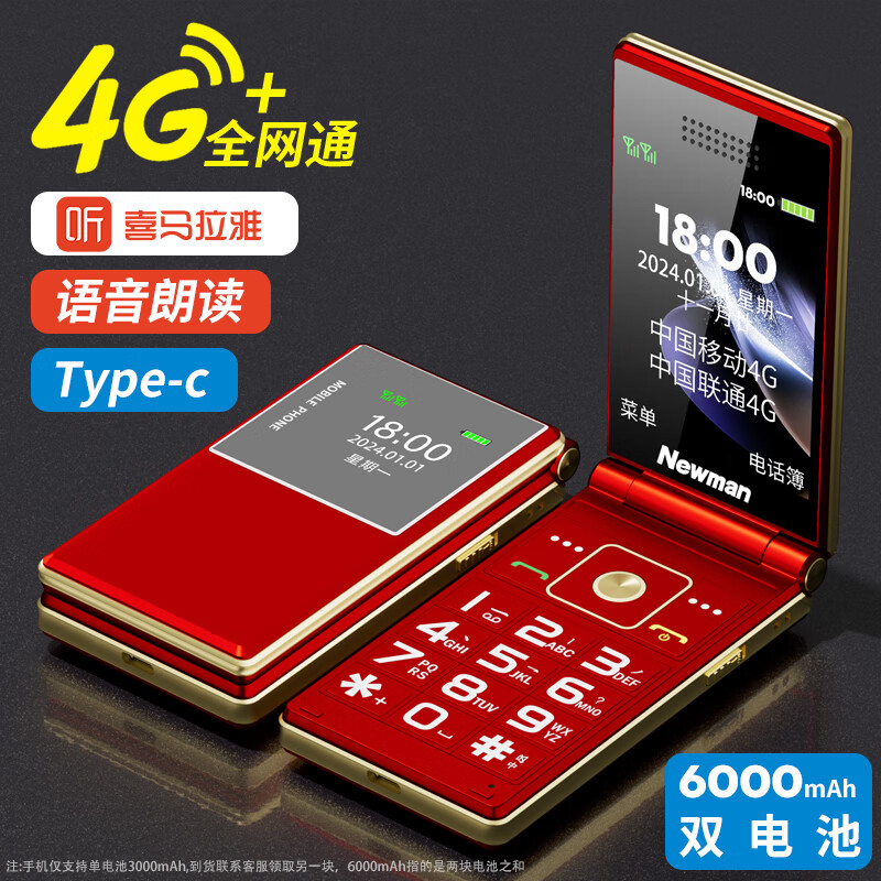 纽曼(Newman) V09 玛瑙红 4G通翻盖老年人手机 超长待机老年机 大字大声音大按键老人手机 学生备用功能机价格:172.00元!