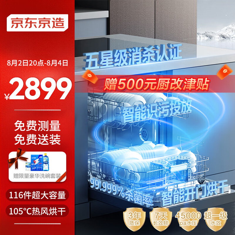 京东京造水立方16套洗碗机 大容量嵌入式 独嵌两用自动开关门烘干 智能分层洗 一级水效五星消毒价格:3099.00元!