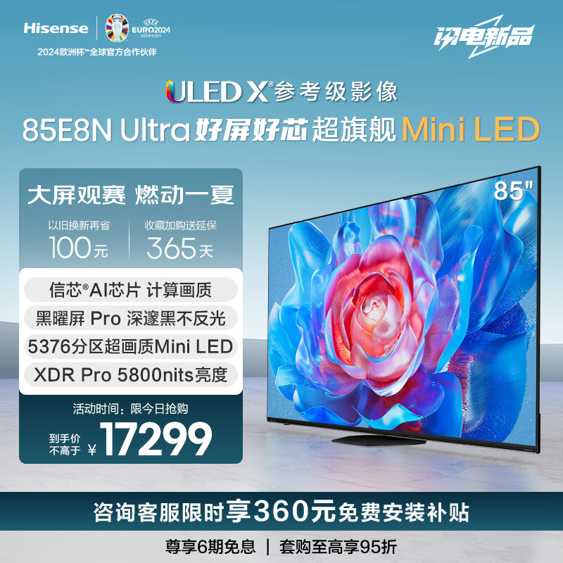 海信电视 85E8N Ultra 85英寸 ULED超画质 5376分区Mini LED 信芯AI芯片 黑曜屏Pro 超薄液晶电视机价格:17299.00元!