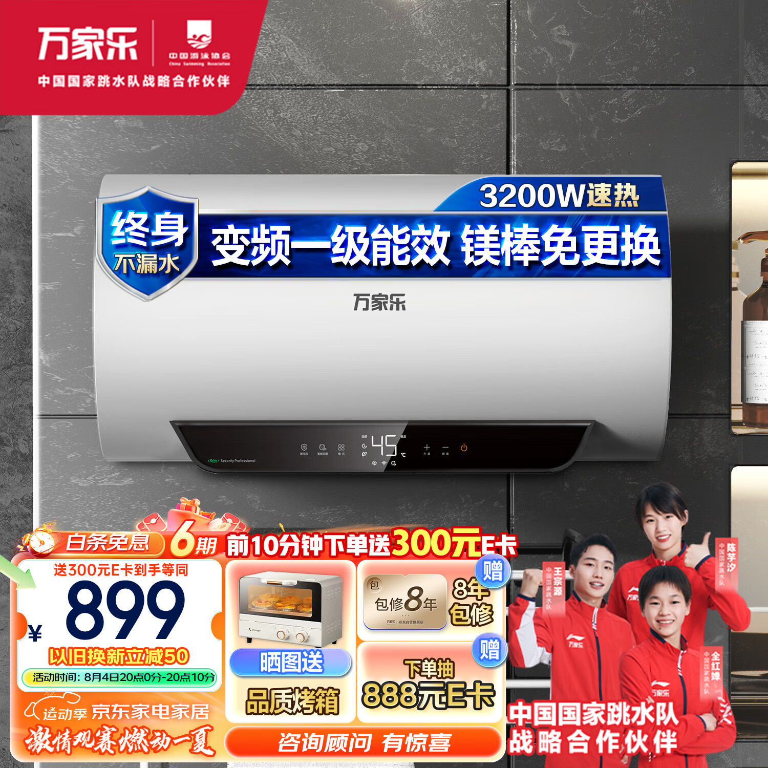 万家乐60升电热水器3200W速热 家用储水式 镁棒免换 出水断电 手机操控 变频一级能效D60-DW5 以旧换新价格:1299.00元!